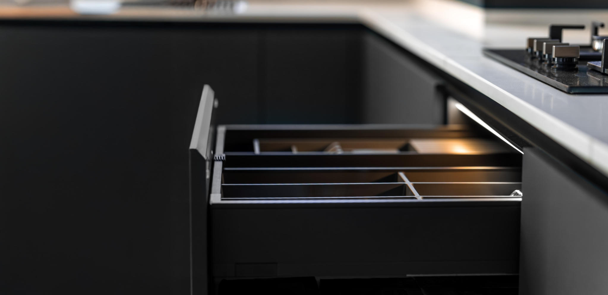 ZenoGrip – handleless fronts made easy is all about you as a designer and manufacturer. Compac Panels delivers the Sharknose profile in long lengths to the manufacturer ready for the final processing of cabinet fronts. This makes the process of specifying and manufacturing handleless cabinetry a breeze